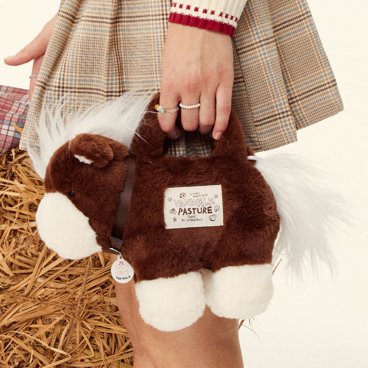 VANWALK Farm Series VS21 Homemade Casual Plush Pony Doll Bag for Girls, Single Shoulder Crossbody Bag