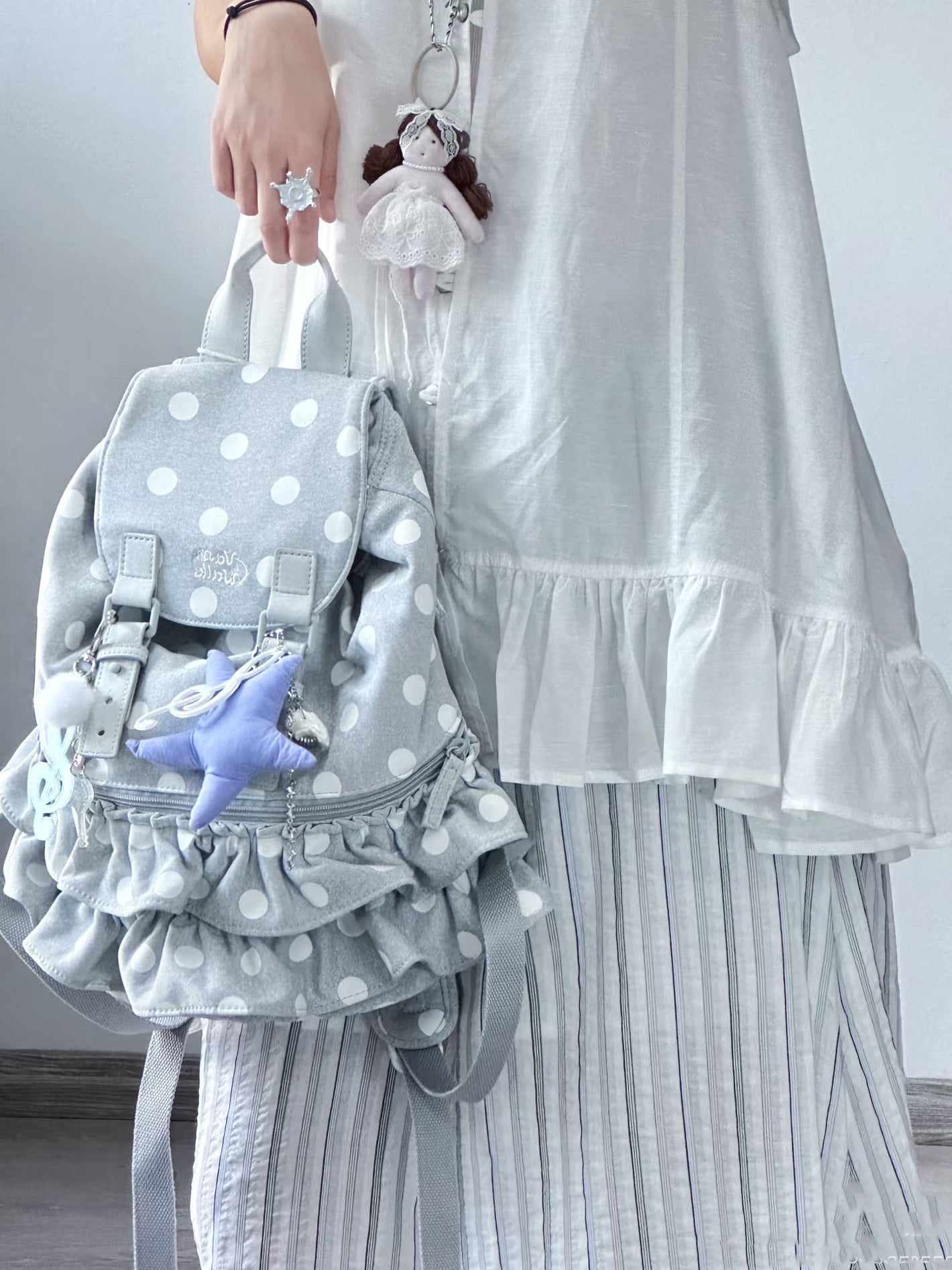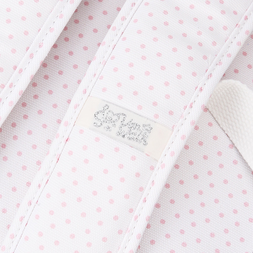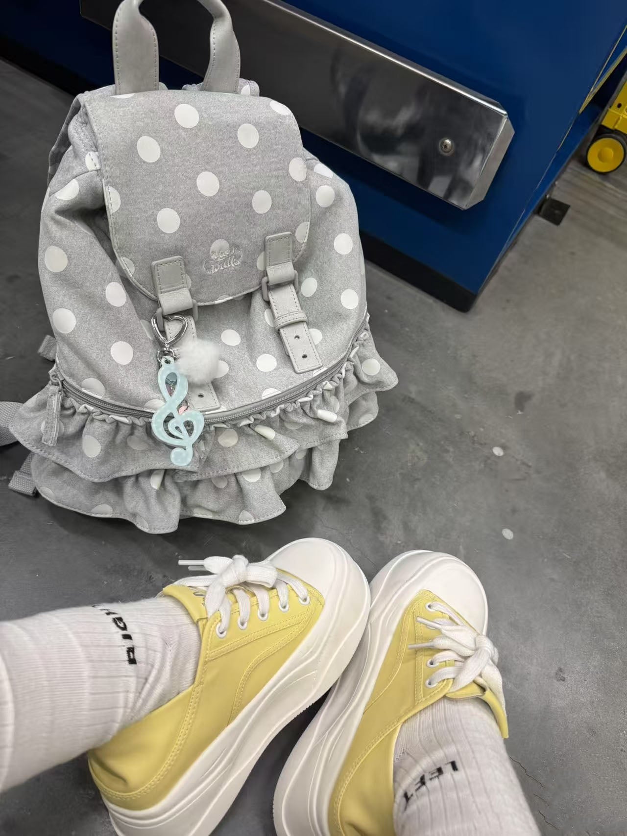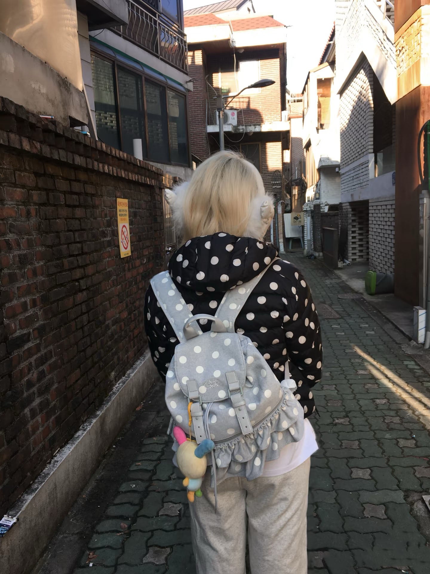 • This bag is so fun and cheerful! The polka dot pattern is cute AF. I use it for library sessions, and it always sparks conversations.